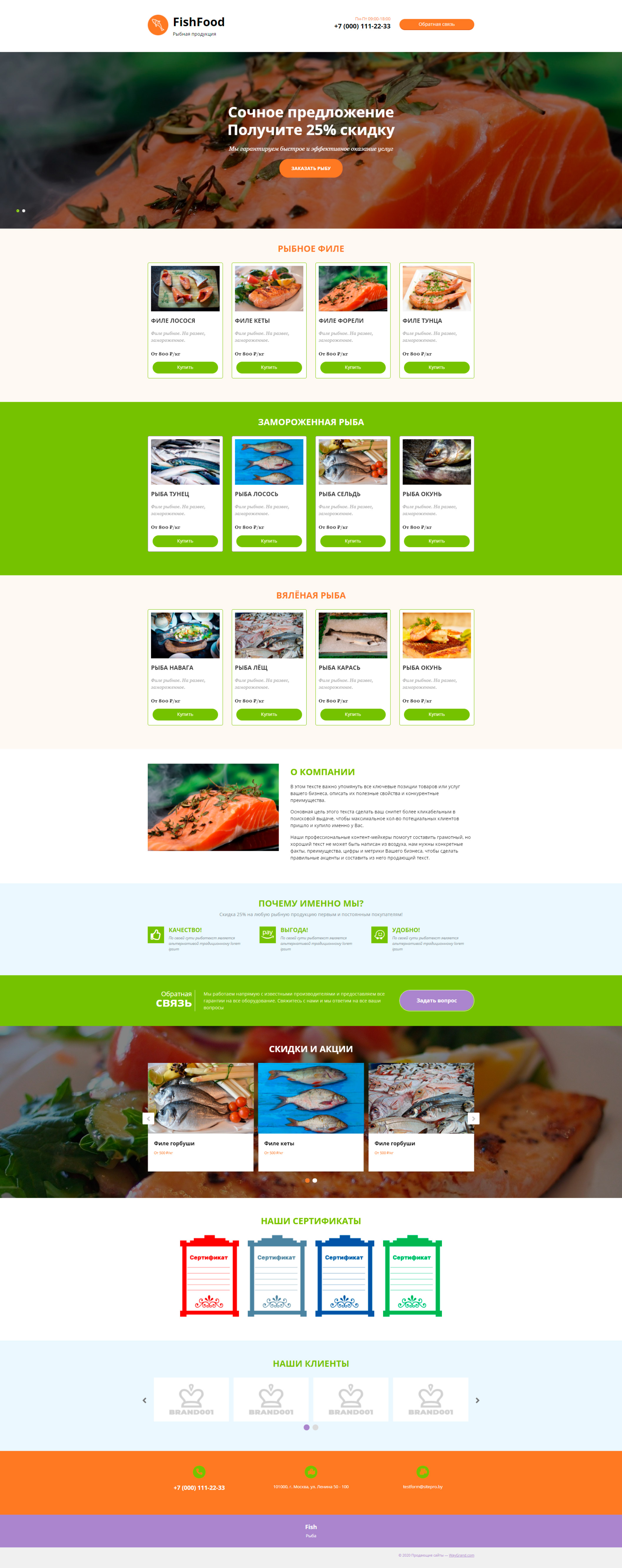 Закажите готовый продающий сайт лендинг #1731202 в Дербенте за 1-3 дня «под ключ»: свёрстан, отрисован и готов к рекламе. Тематика шаблона «Рыбная продукция».