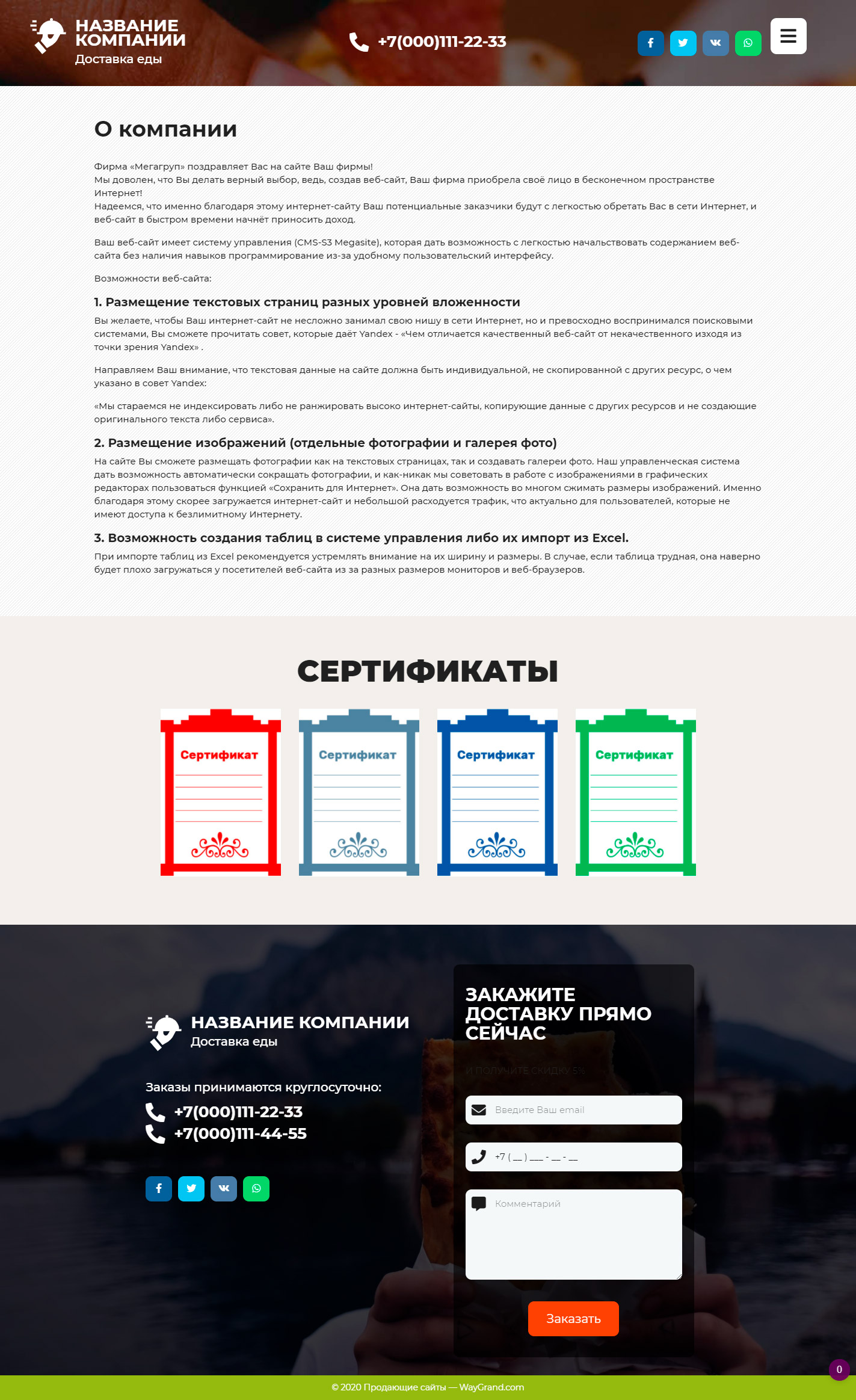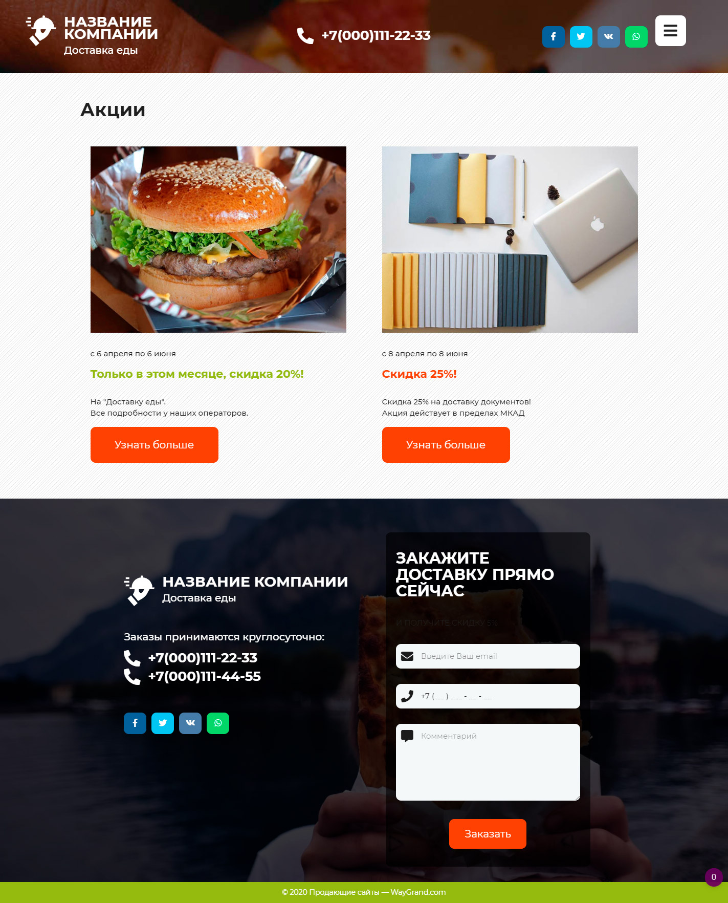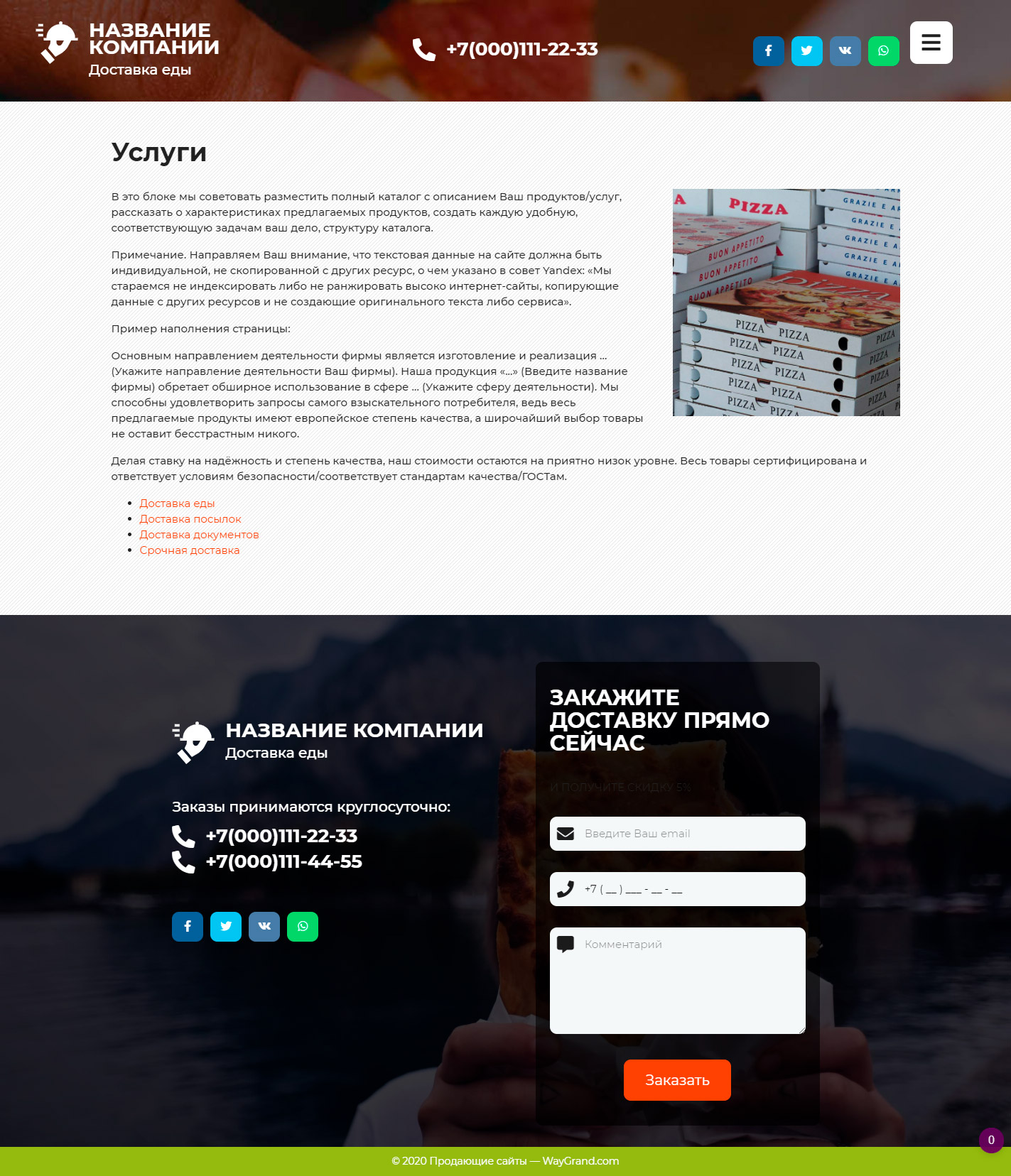 Готовый сайт визитка Курьерская доставка еды #3071302 — Купить на WayGrand.com в Дербенте