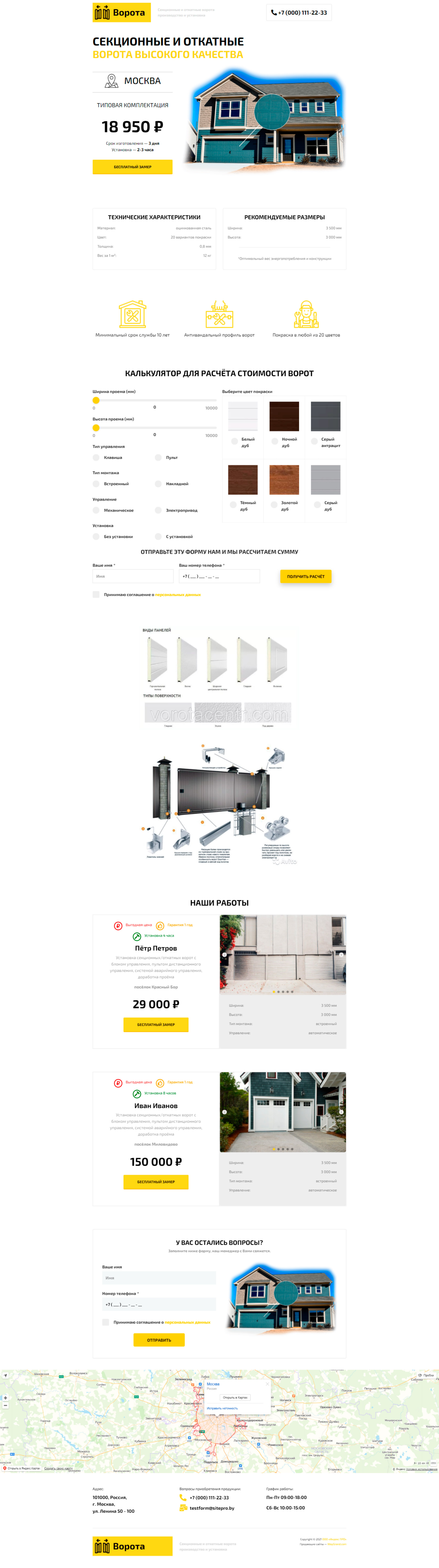 Закажите готовый продающий сайт лендинг #2001201 в Дербенте за 1-3 дня «под ключ»: свёрстан, отрисован и готов к рекламе. Тематика шаблона «Секционные и откатные ворота производство и установка».