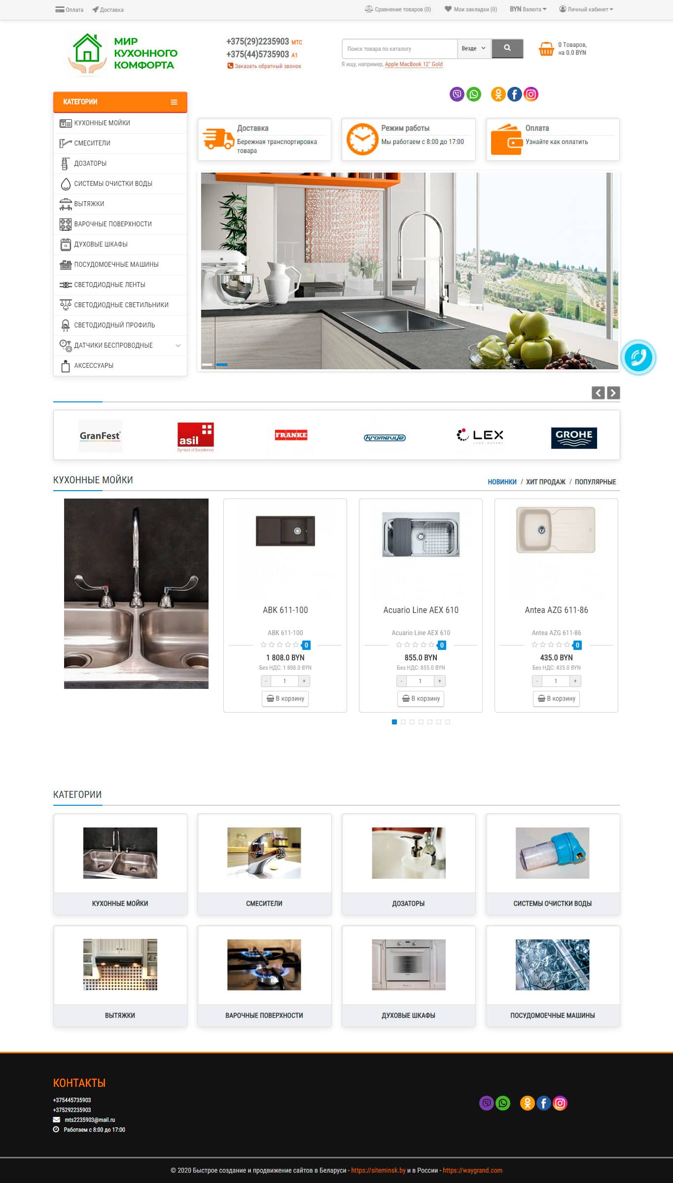 Сделали готовый сайт по тематике сантехника и аксессуары для кухни за 5 дней. Основная цель клиента: упрощение процесса продаж, упрощение процесса обратной связи. Сайт должен решать основную задачу: увеличение дохода компании за счет интернет-продаж, сокращение расходов на другие виды рекламы. По стоимости, клиенту данный заказ обошелся в 590 BYN.