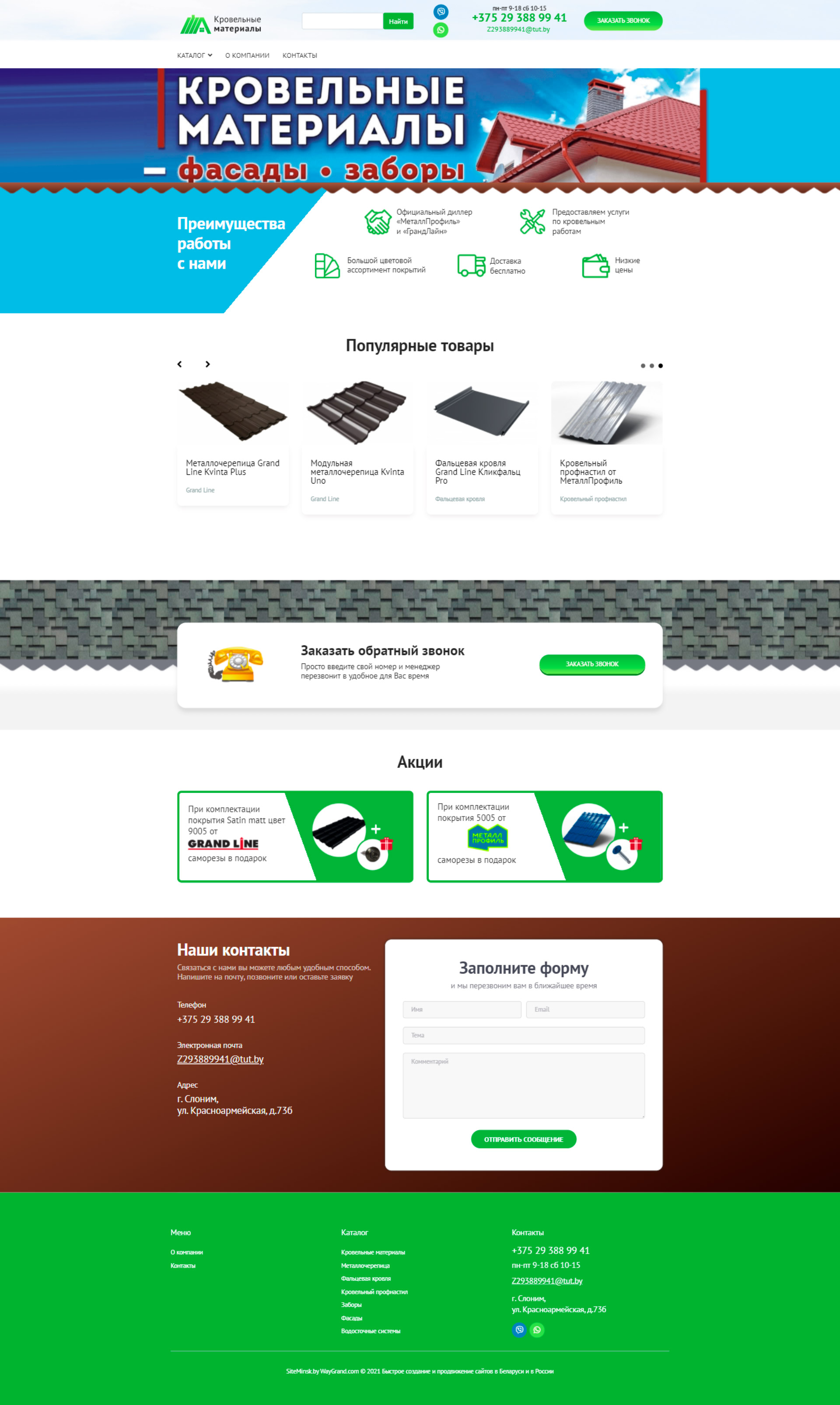 Закажите готовый продающий сайт визитка #324 в Дербенте «под ключ» на waygrand по выгодной цене: свёрстан, отрисован и готов к рекламе. Тематика шаблона «Кровельные материалы».