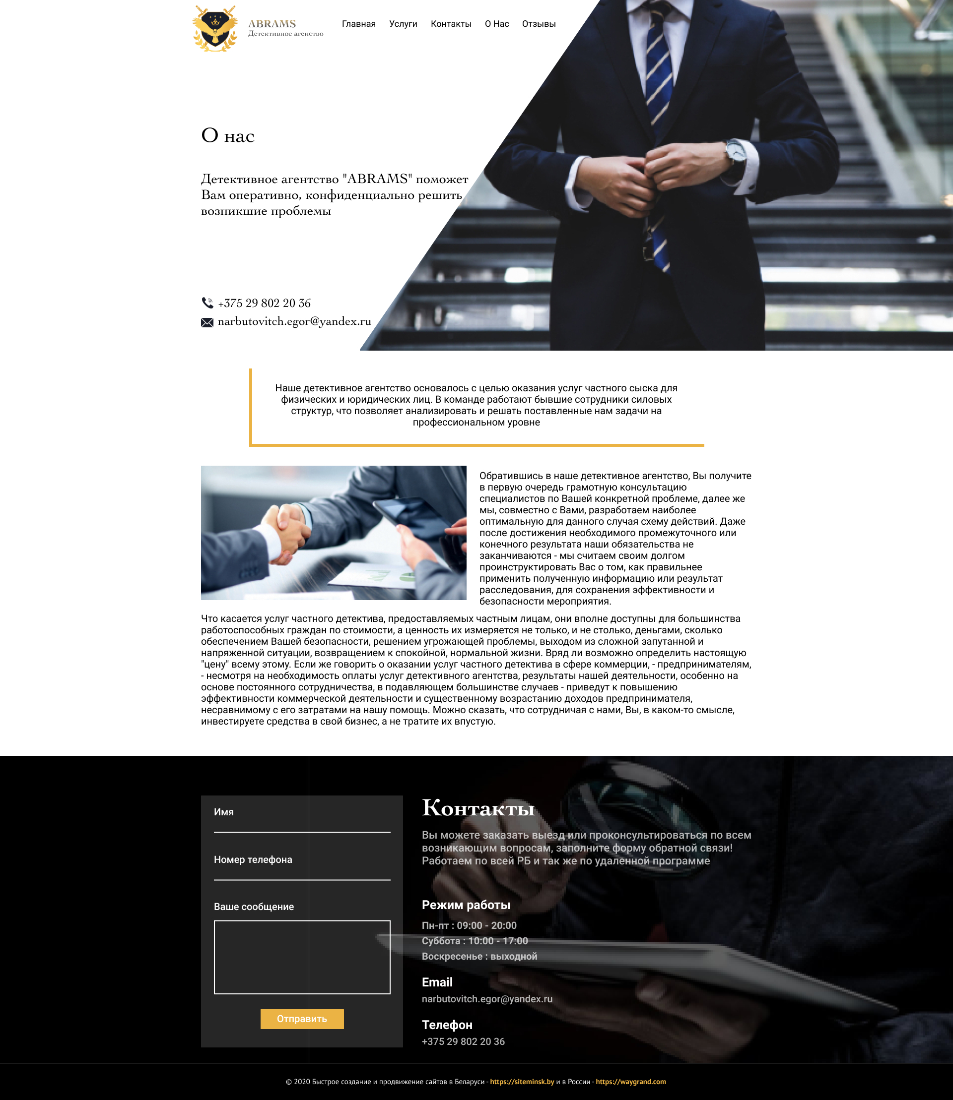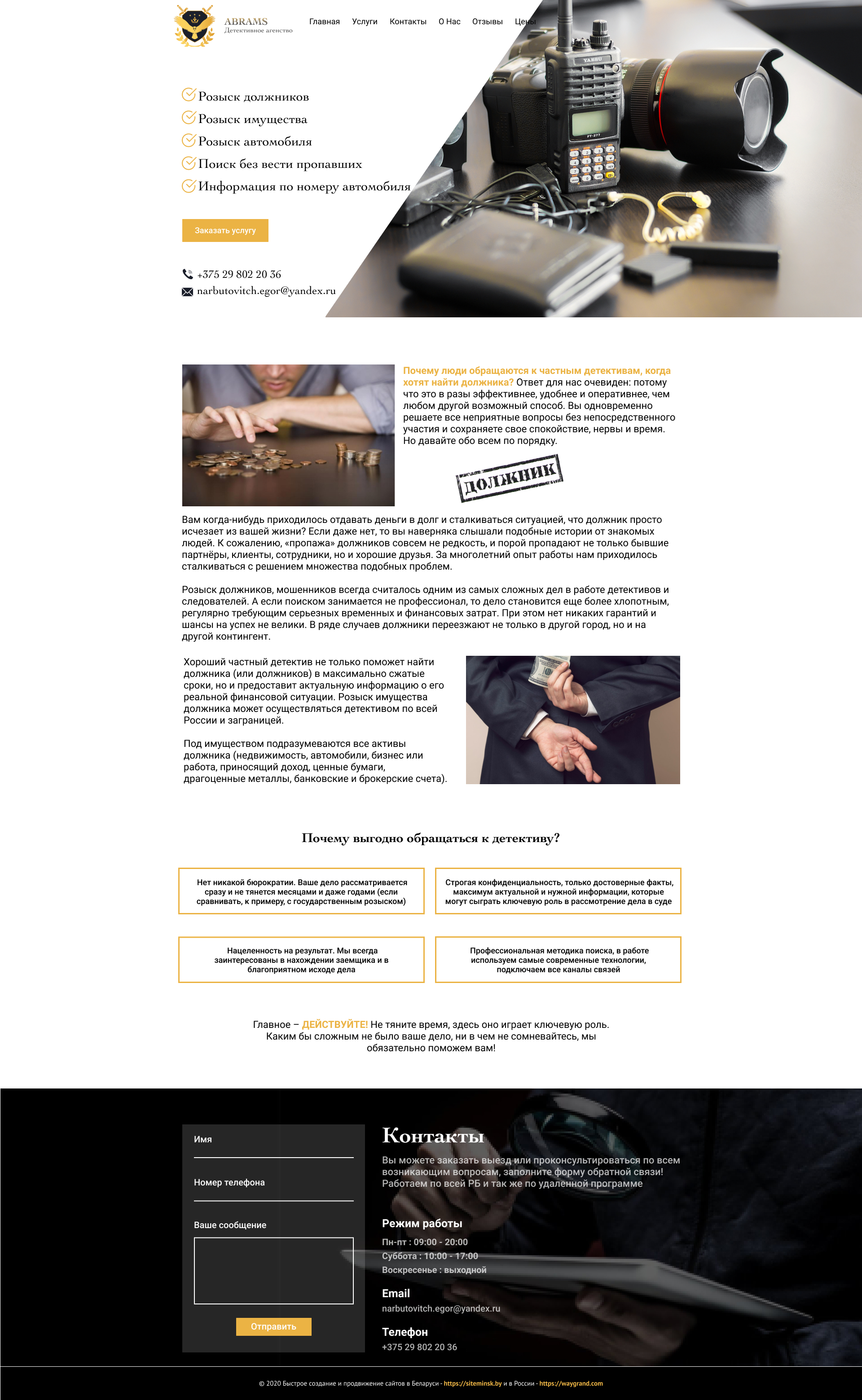 Закажите готовый продающий сайт визитка #239 в Дербенте за 5-7 дня «под ключ»: свёрстан, отрисован и готов к рекламе. Тематика шаблона «Частное детективное агентство».