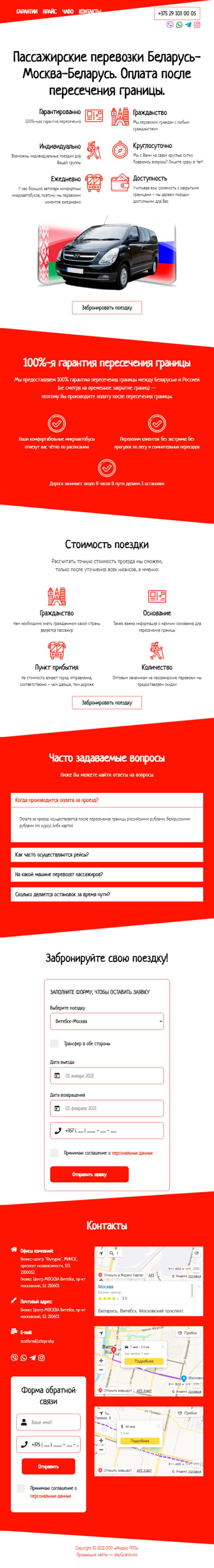 Закажите готовый продающий сайт лендинг #2528201 в Дербенте за 1-3 дня «под ключ»: свёрстан, отрисован и готов к рекламе. Тематика шаблона «Пассажирские перевозки Беларусь-Москва-Беларусь».