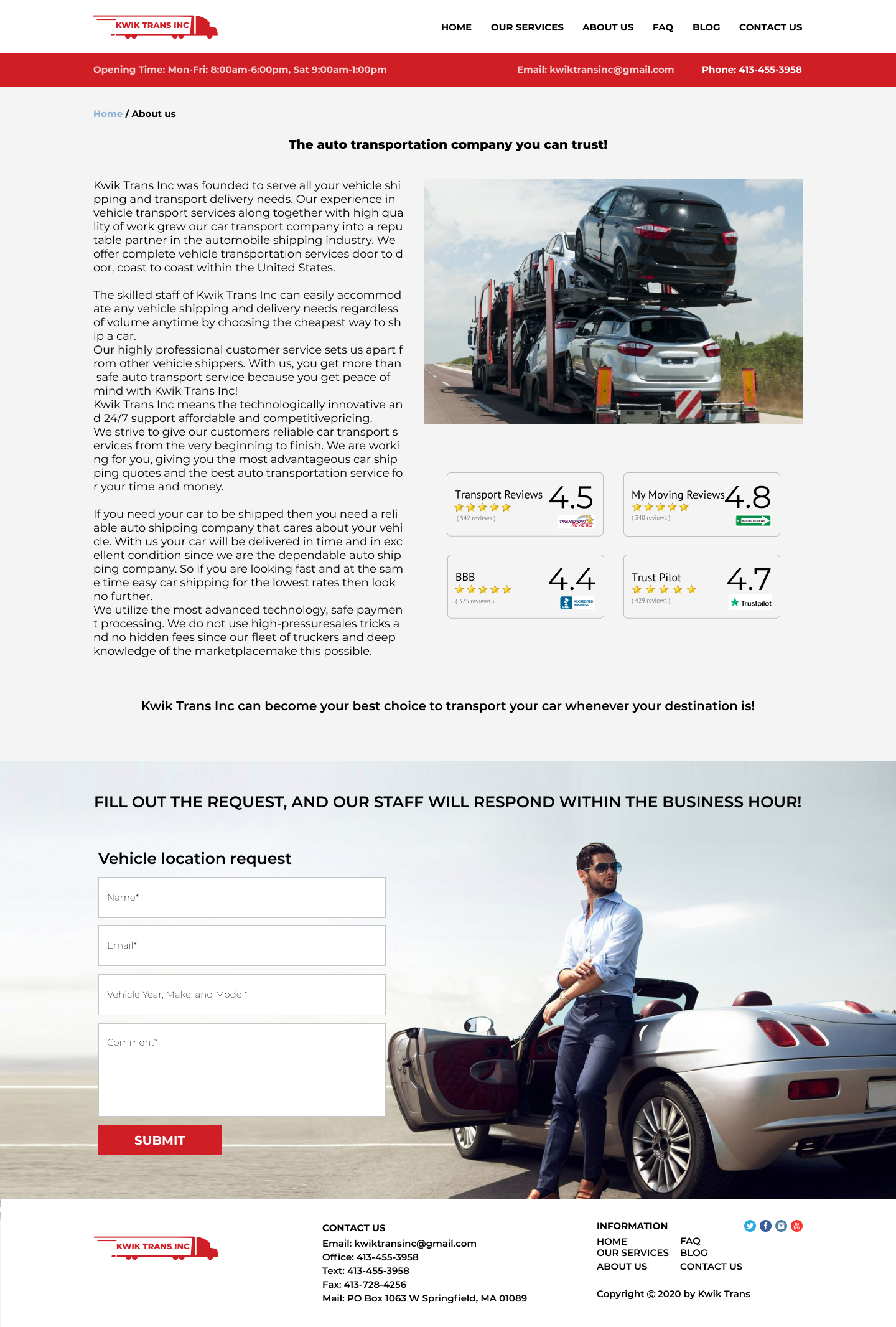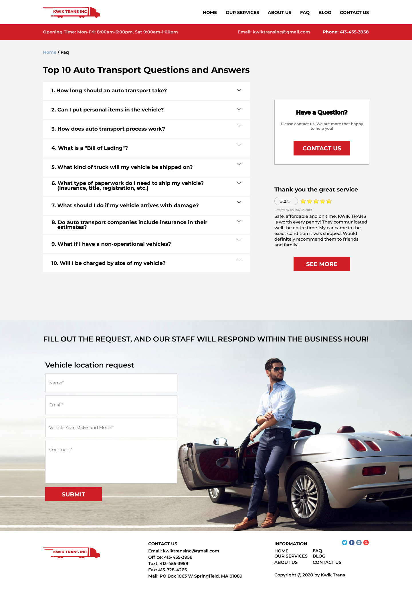 Закажите готовый продающий сайт визитка #223 в Дербенте за 5-7 дня «под ключ»: свёрстан, отрисован и готов к рекламе. Тематика шаблона «Safe & Reliable National Auto Transport».